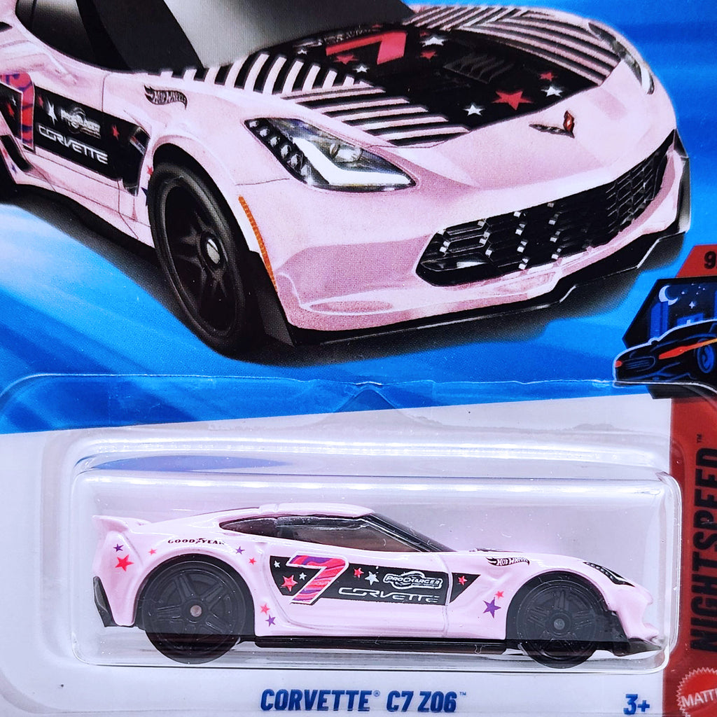 Dominate the night track with the Hot Wheels NIGHTSPEED - Corvette C7 Z06. This iconic American sports car is tuned for maximum speed and captivating style under the neon lights. With aggressive aerodynamics and raw V8 power, it is the true king of the street.