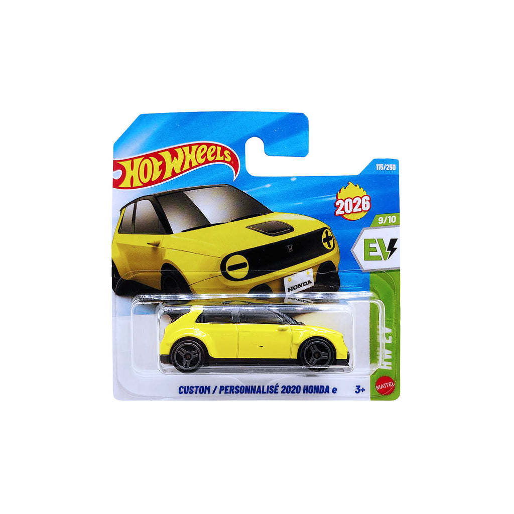 Experience the future of urban mobility with custom flair in the Hot Wheels HW EV - Custom 2020 Honda e. This cute compact electric car gets a sporty makeover with a wide-body kit and racing style. It proves that eco-friendly cars can also look fierce on the road.