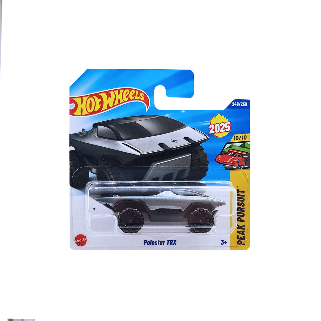 Conquer the most extreme terrains with the Hot Wheels Polestar TRX from the PEAK PURSUIT series! This futuristic concept vehicle is designed for ultimate off-road adventure, blending sleek, visionary design with rugged capability. A fantasy casting born for exploration, the Polestar TRX is perfect for collectors who love cutting-edge designs and kids ready to tackle any imaginary mountain pass or alien landscape.